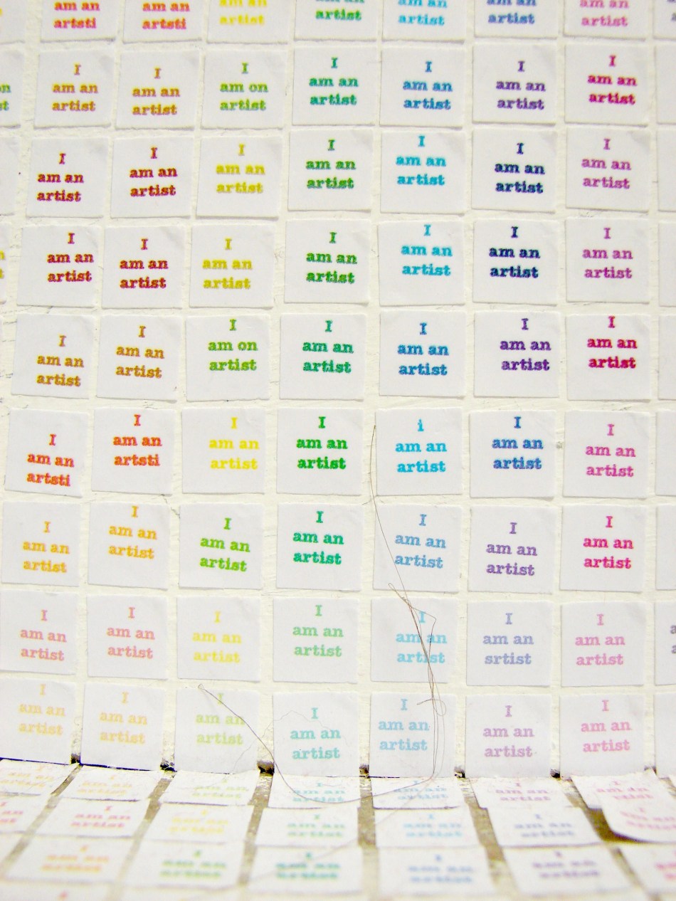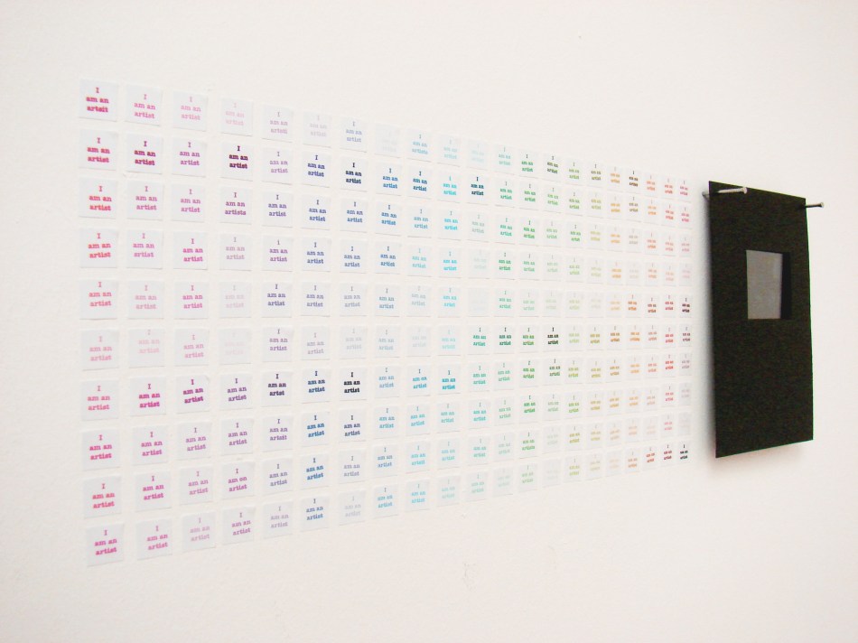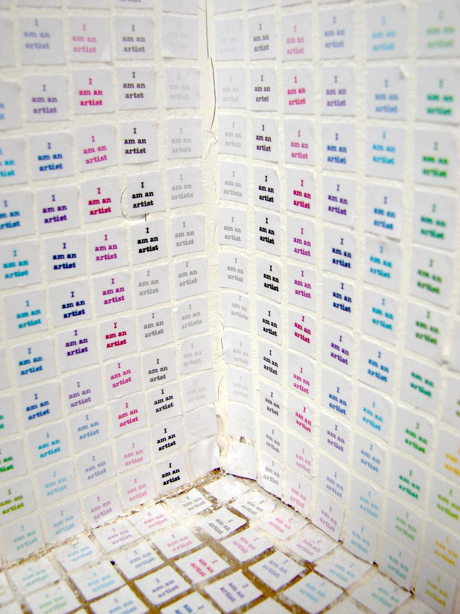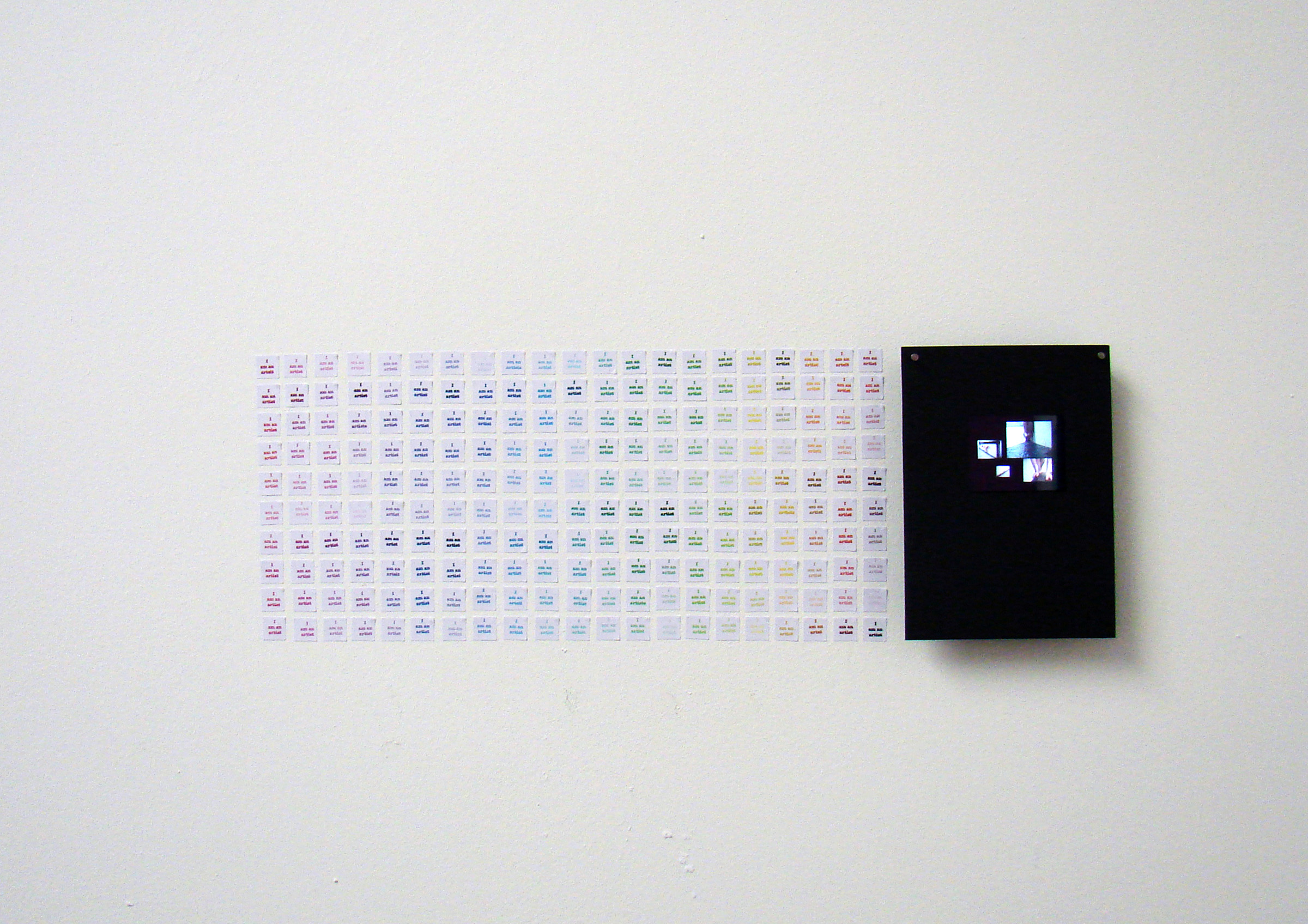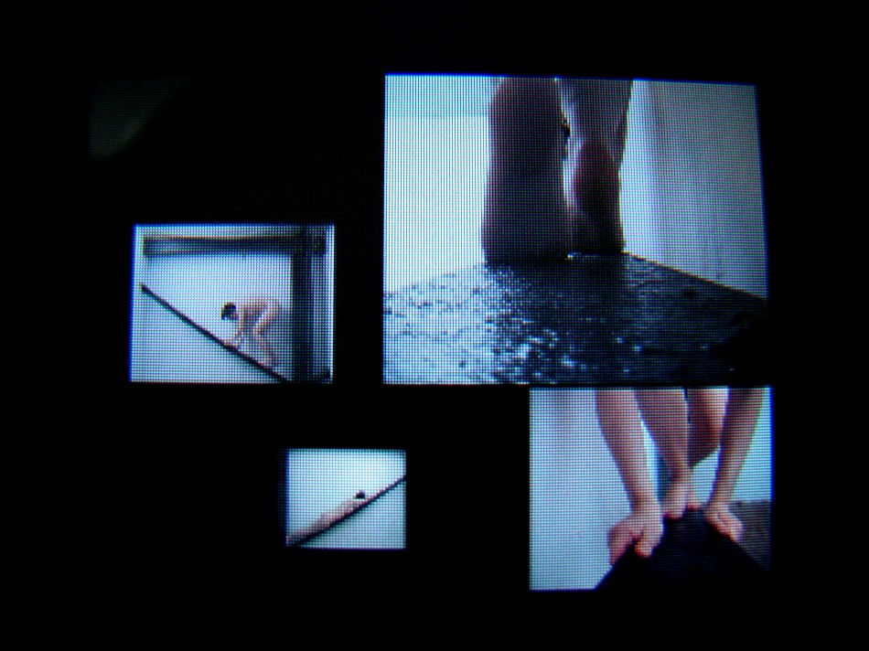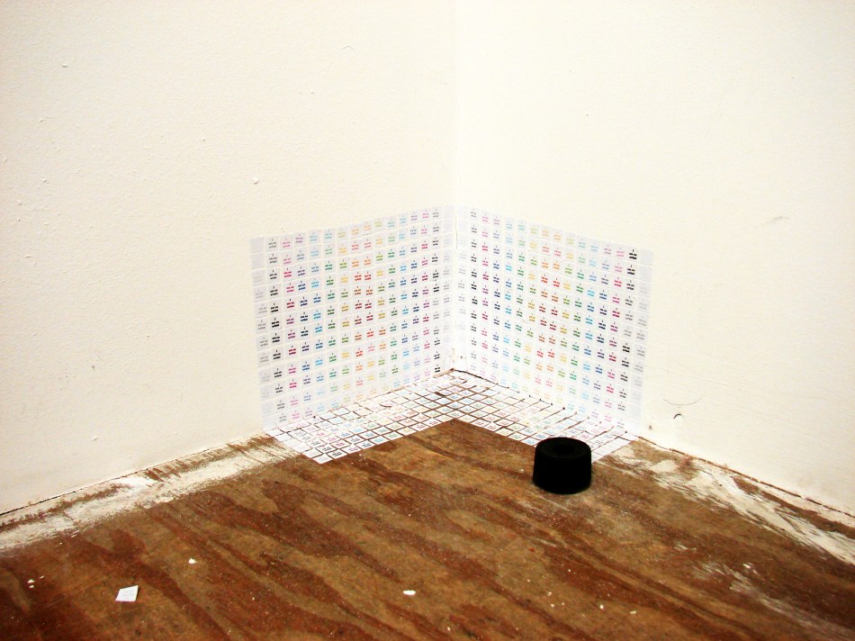 Typically when I say ‘drawing’ I don’t actually mean I picked up a pencil and made marks on paper. They are drawings nonetheless. I’ve been attempting to incorporate colour into the work for some time now, albeit very hesitantly. I have also been waffling on about finally successfully combining the drawings with the video work and I think I’m making progress.Below are images of two pieces I have done in the studio. The first is installed on the wall and floor in a corner and it is a straight forward drawing incorporating colour. The second piece uses colour but also features my video piece ‘To No Effect’, which I have now taken to calling ‘Beam’. It’s small…just shown on my iPod, but I think I’m on to something with it and I’m excited to experiment some more with this combination of the drawings and videos.